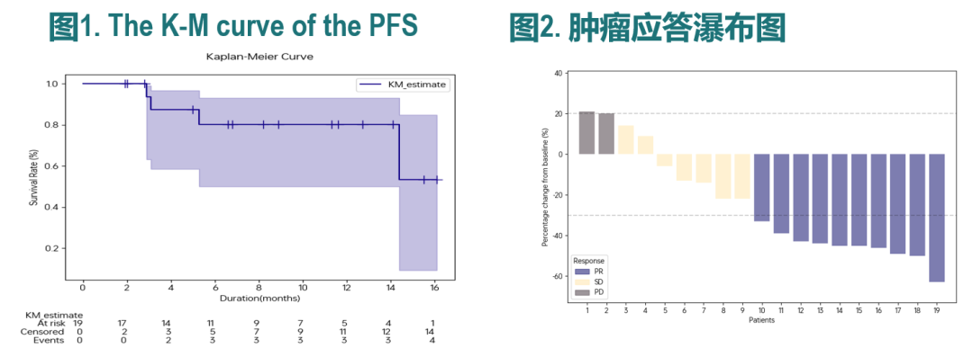 疗效方面,中位随访8.9个月时,中位无进展生存期(PFS)尚未达到,6个月PFS率为79.8%。在19例可评估的患者中,10例达到部分缓解,7例疾病稳定,客观缓解率(ORR)为52.6%(95%CI:30.2%-75.1%),疾病控制率(DCR)为89.5%(95%CI:66.9%-98.7%)。最终有3例患者出现快速进展,这些患者均具有肉瘤样特征(其中2例为乳头状肾细胞癌,1例为嫌色细胞癌)。