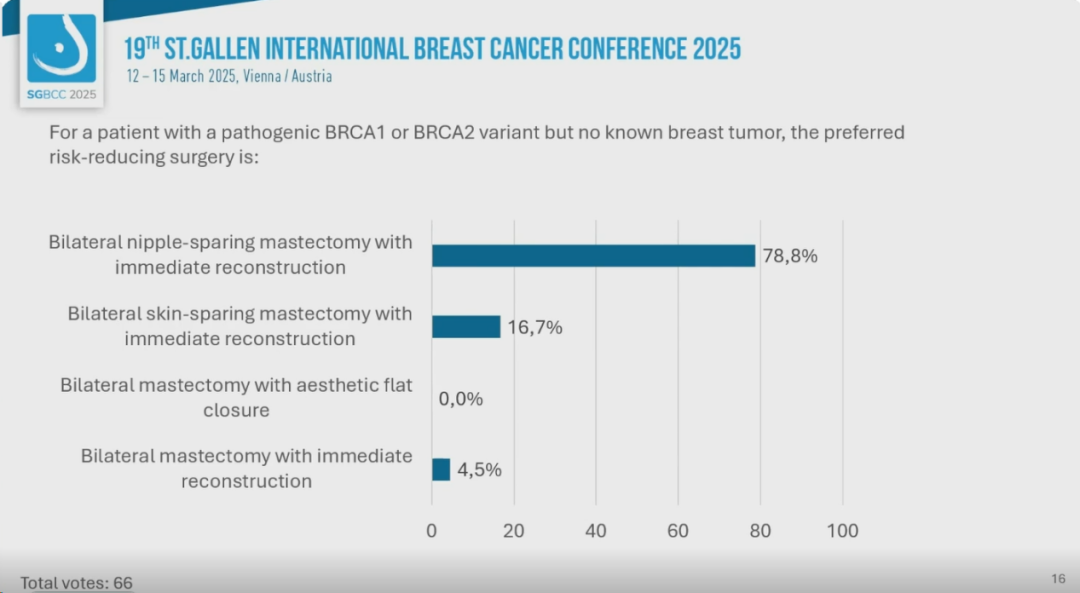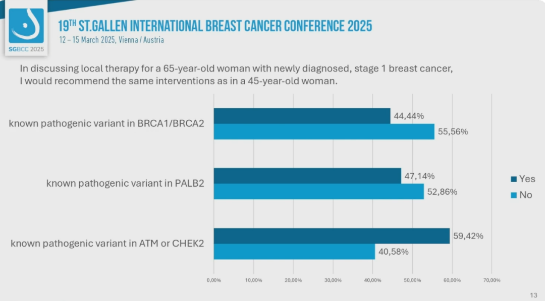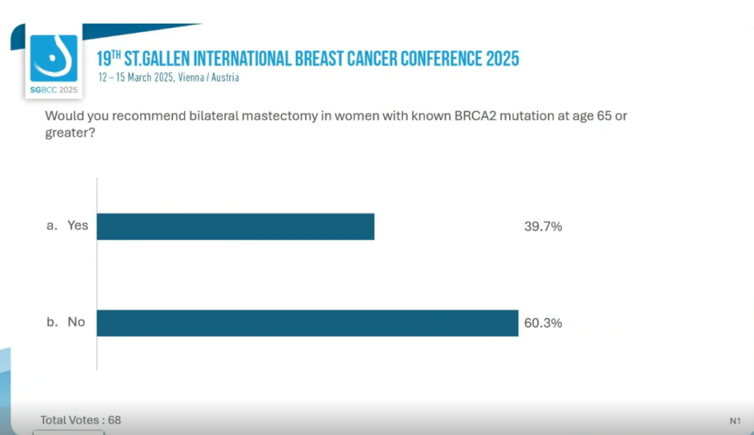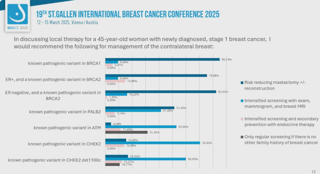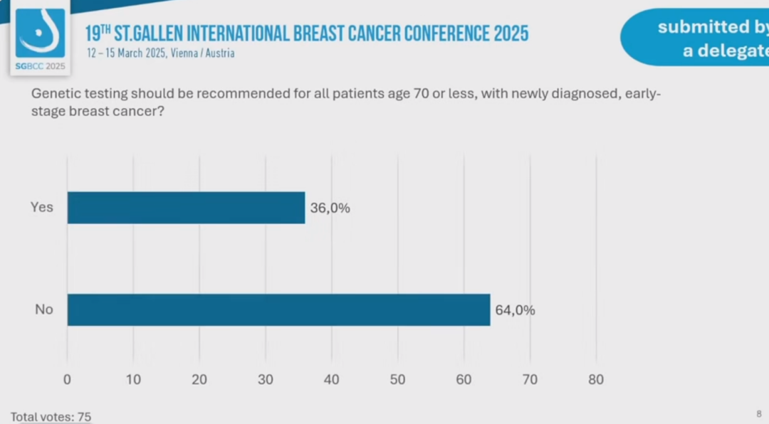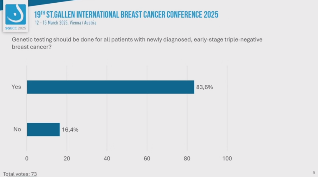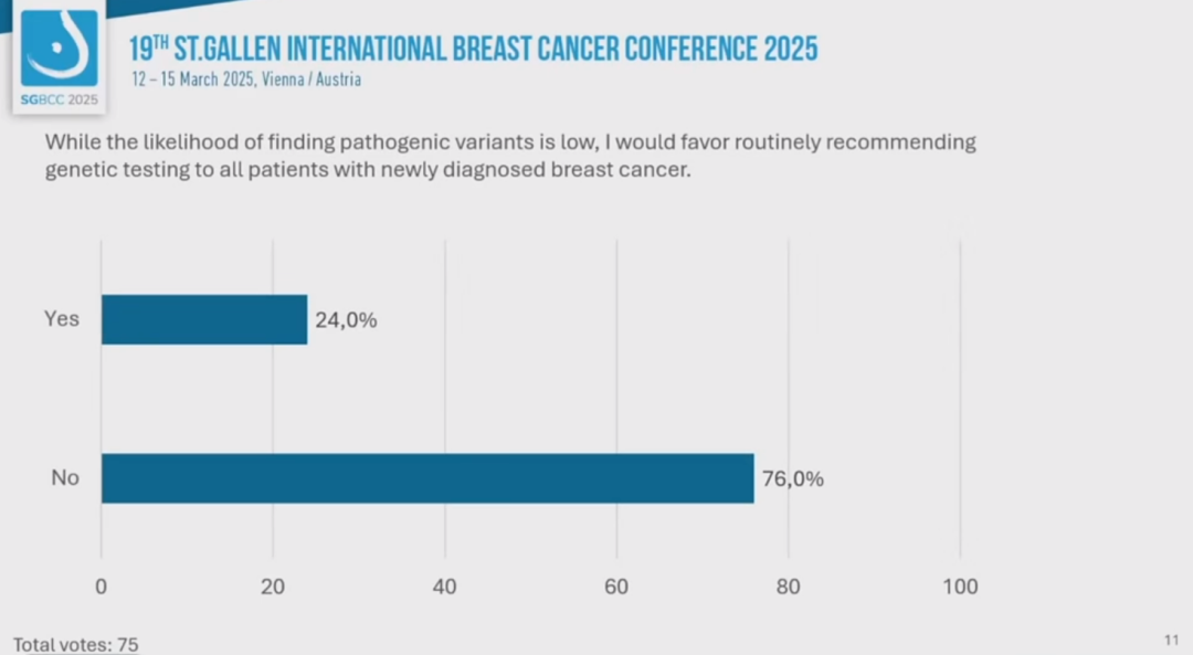 编者按:第19届St.Gallen国际乳腺癌大会(SGBCC 2025)于当地时间2025年3月12~15日在音乐之都维也纳举行。大会的最后一天,专家投票压轴登场。《肿瘤瞭望》整理了基因检测章节的专家投票,现成文如下,与大家一起感受早期乳腺癌治疗决策的圣加伦氛围。