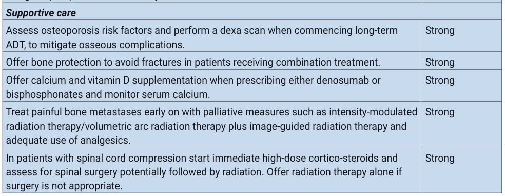 第6.6.9节中关于激素敏感性转移性疾病的支持性护理建议中关于向接受长期雄激素剥夺疗法±ARPI的男性提供骨保护药物的新建议。