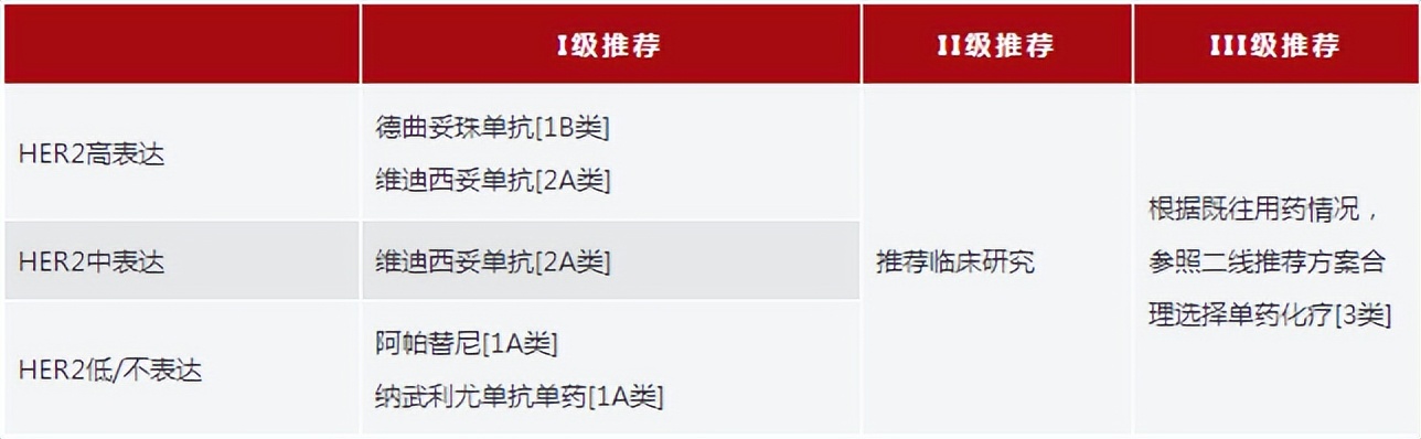 表2.2025版《CSCO胃癌诊疗指南》对HER2表达胃癌三线及三线以上治疗的推荐