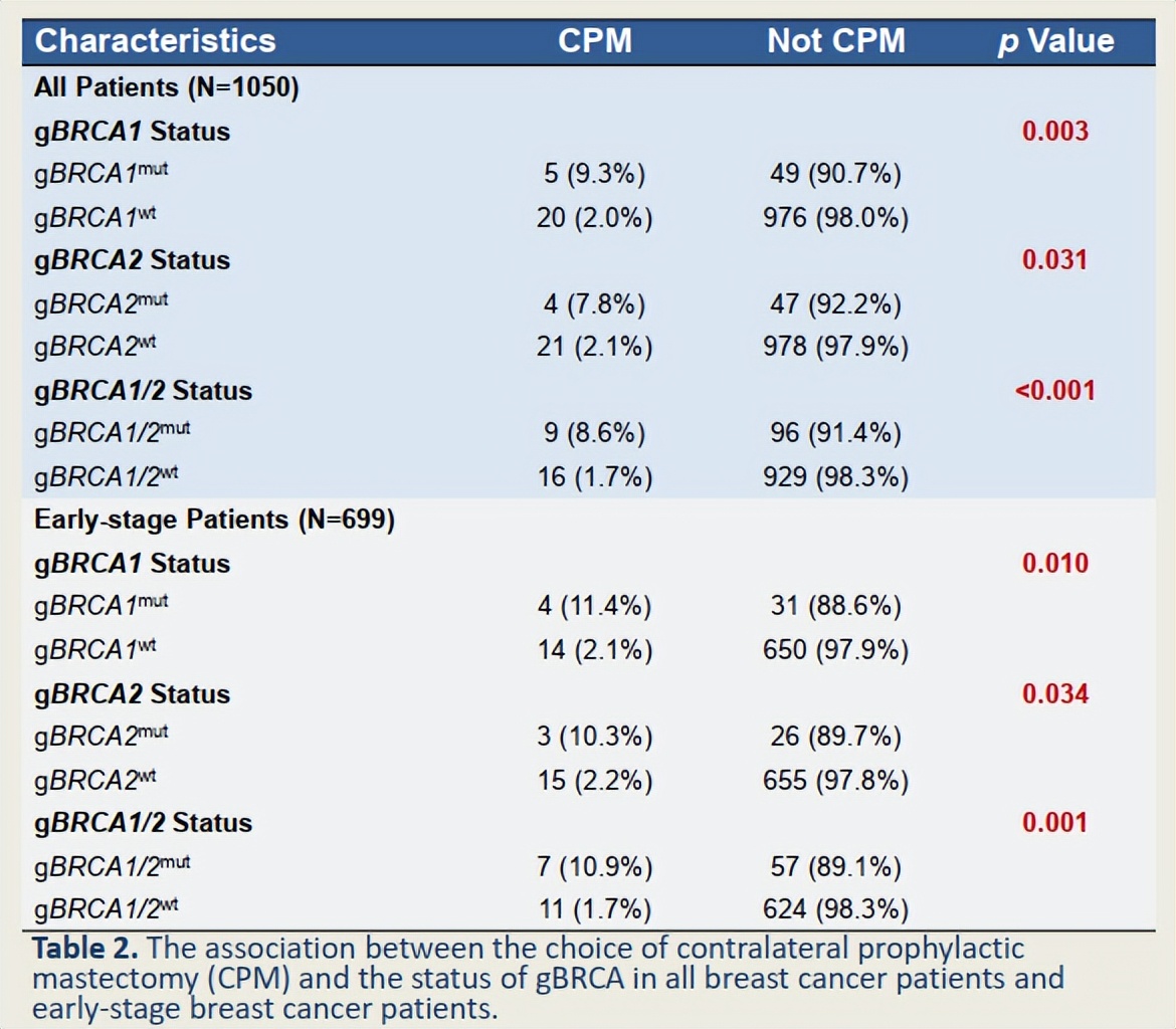 △乳腺癌患者gBRCA状态与选择预防性对侧乳房切除之间的相关性[8]