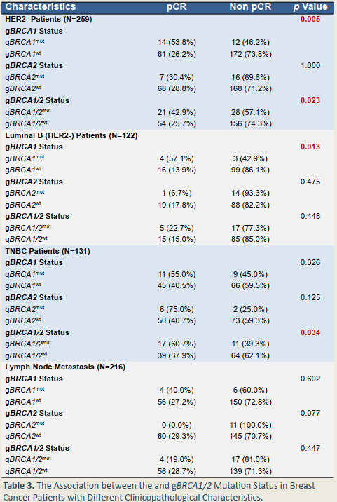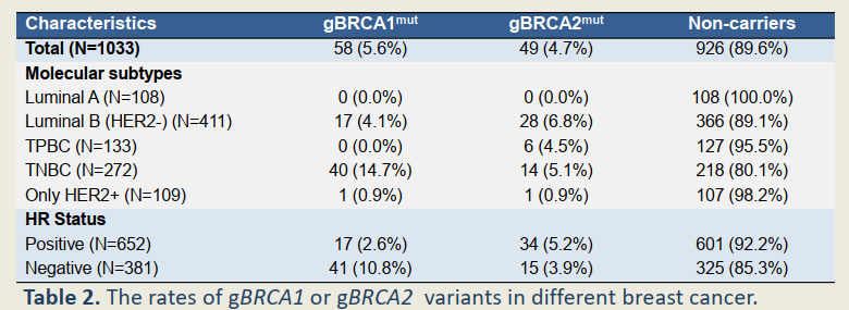 △乳腺癌患者gBRCA1/2突变状态和临床病理特征的相关性[9]