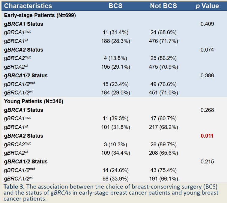 △早期、年轻乳腺癌患者gBRCA状态与选择保乳手术的相关性[8]