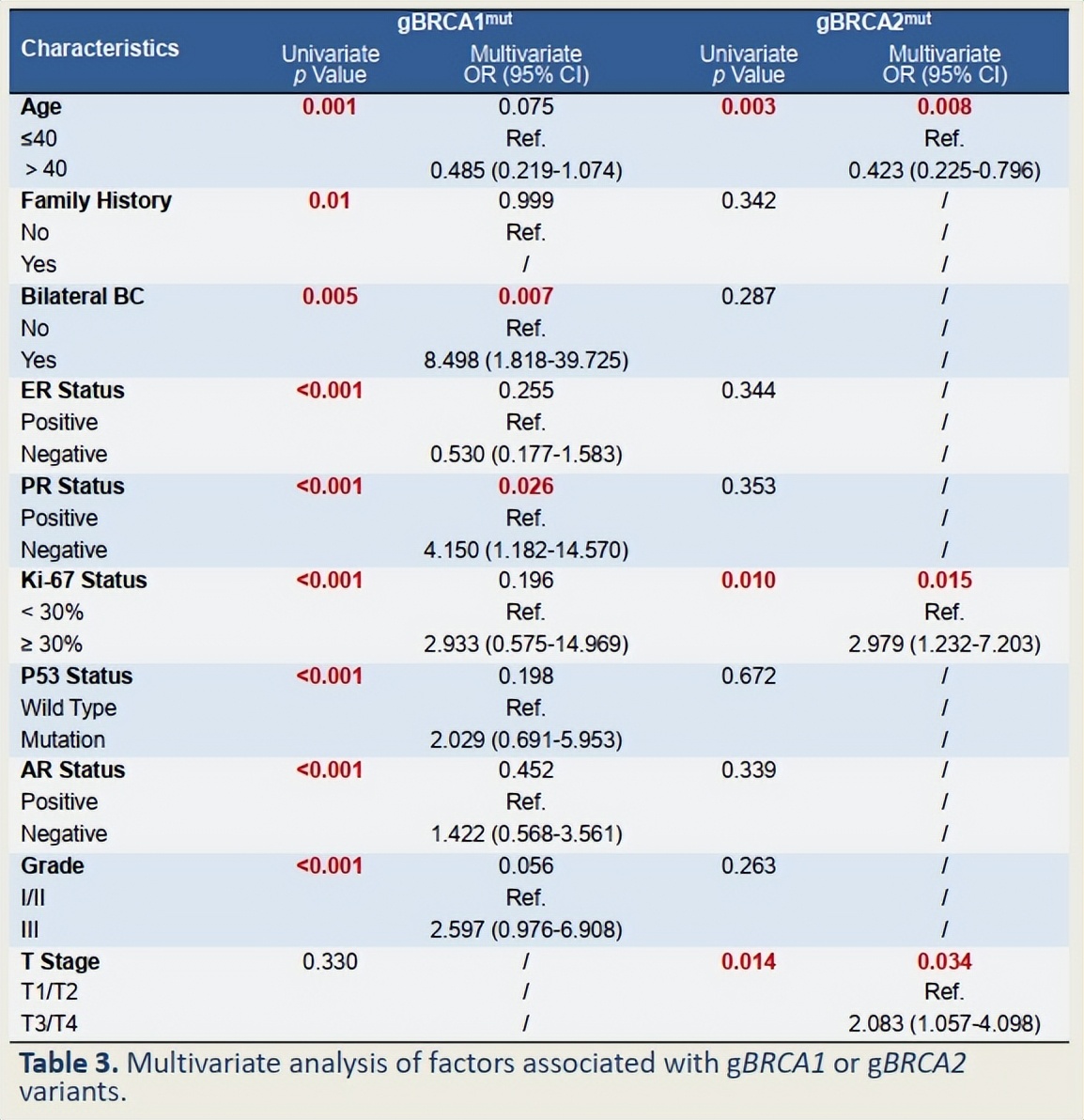 △gBRCA1或gBRCA2相关多因素分析[7]