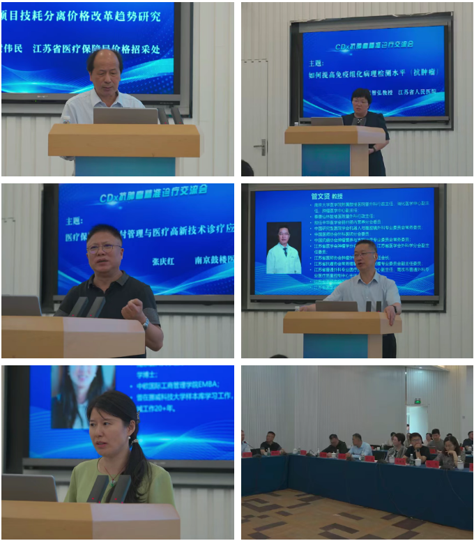 随后,会议进入学术报告环节。江苏省医疗保障局价格招采处黄伟民带来了题为《检验(病理)项目技耗分离价格改革趋势研究》的报告,指出医疗收费关系到医疗机构和企业的生存和发展;而医药企业改革过程中,需要研究诊断试剂注册的策略,关注价格治理的政策。江苏省人民医院病理科张智弘教授报告了《高质量病理免疫组化检查助力精准医学的发展》,强调了精准治疗极大改善了患者预后,同时也高度依赖于病理诊断;并系统介绍了HER2免疫组化检测的现状,亟需通过更好的临床样本质控产品来提高HER2低表达肿瘤的病理诊断水平。南京鼓楼医院医保办张庆红主任则报告了《医疗保障价值支付管理与医疗高新技术诊疗应用》,主要从医保支付方式改革与医保支付标准,学科发展与医药高新诊疗技术医保支付等两方面,强调了如何平衡医保基金的安全和可持续、患者的待遇水平和支付的承受能力。