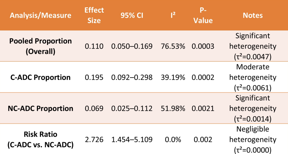 放疗是脑转移患者的标准治疗方式,而该研究聚焦于ADCs联合放疗是否会增加患者症状性放射性坏死(SRN)风险。研究通过荟萃分析比较两种治疗策略的SRN风险,研究者检索PubMed等数据库资料,将符合条件的患者分为两组:同步联用组(C-ADC),即ADCs与放疗同期进行;非同步联用组(NC-ADC),即ADCS与放疗分期进行。研究结果显示,同步使用ADC与导致症状性放射性坏死风险较非同步使用(NC-ADC)显著升高近3倍(19.5%vs 6.9%RR:0.73 95%CI:1.45-5.11,P=0.002)。该研究结果使我们对ADC治疗时代,脑部放疗是否能和ADC药物合并使用提出了质疑。