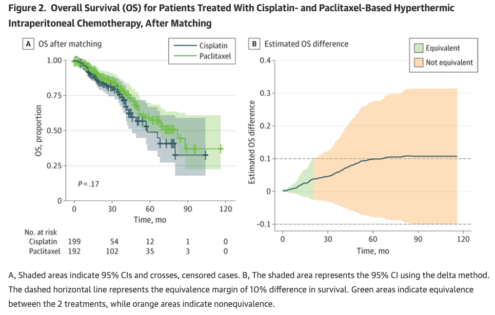 总体来看,本研究是首项通过大样本匹配分析证实紫杉醇HIPEC在生存结局、主要并发症及DFS方面与顺铂等效的研究,因此对于铂类药物不耐受或耐药、体质虚弱或肾功能进行性恶化的患者,该方案可成为有价值的替代选择。