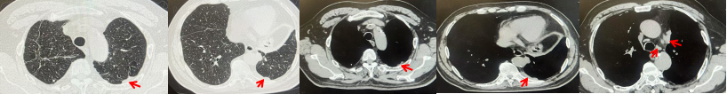 图1:患者手术前(2023.06)胸部CT肺窗及纵隔窗