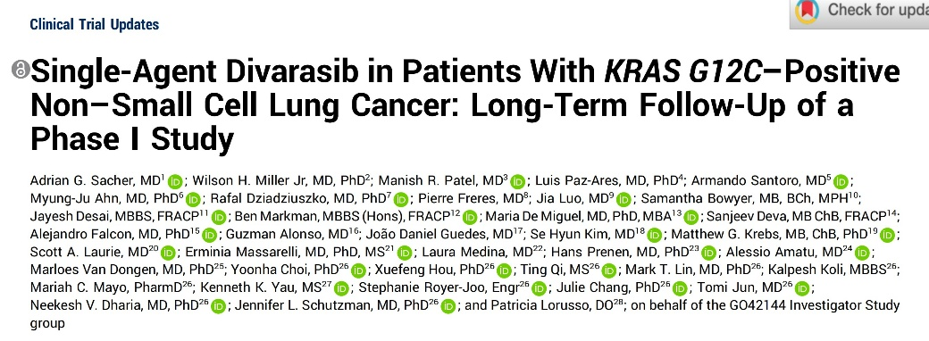 单剂量Divarasib治疗KRAS G12C突变的非小细胞肺癌患者:一项I期临床研究的长期随访数据