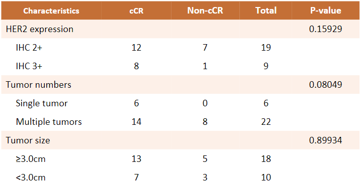 表1.达到/未达到cCR患者的特征对比