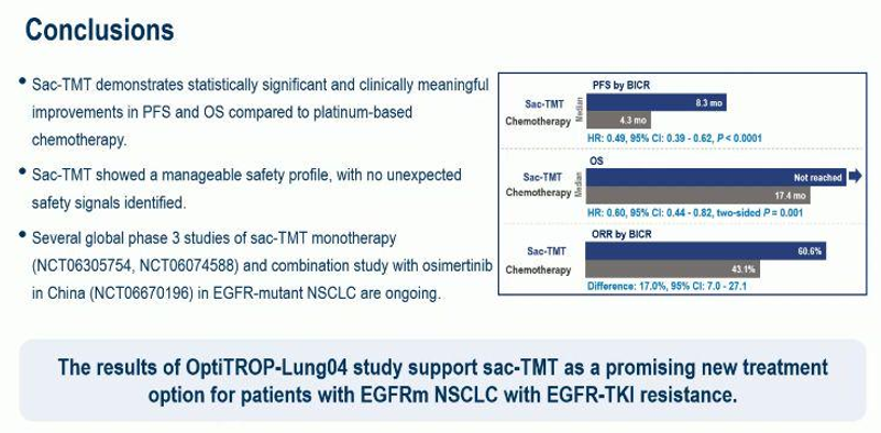 [2]Zhao S,Cheng Y,Wang Q,et al.Sacituzumab tirumotecan in advanced non-small-cell lung cancer with or without EGFR mutations:phase 1/2 and phase 2 trials.Nat Med.2025;31(6):1976-1986.doi:10.1038/s41591-025-03638-2