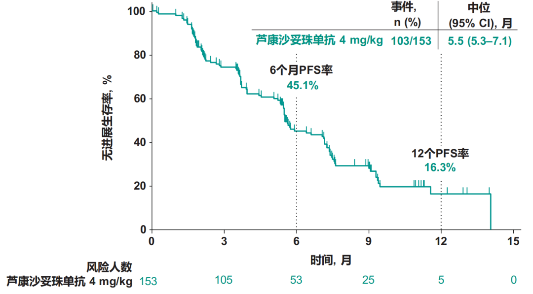 • 两个剂量组的中位PFS分别为6.0个月和7.3个月。