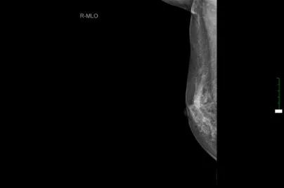 彩超示:右乳非均质低回声包块(BI-RADS 4d级),右侧胸壁皮下组织增厚,右侧腋窝多发淋巴结肿大,左侧腋窝淋巴结可见,右侧锁骨上窝淋巴结偏大;