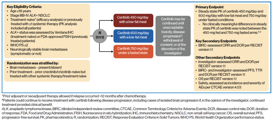 ALK阳性NSCLC约占3%-7%,对ALK抑制剂治疗有效。二代ALK抑制剂塞瑞替尼经FDA获批治疗ALK阳性NSCLC的初始推荐剂量为750mg/日空腹服用,然而胃肠道不良反应发生率很高,随即开展了ASCEND-8研究,探索塞瑞替尼的最佳给药方式。ASCEND-8研究发现,塞瑞替尼450mg随餐方式同750mg空腹方式的药代动力学参数相仿,但疗效更优、安全性更佳。此次ESMO大会进一步披露了ASCEND-8研究中亚洲亚组的结果,让我们一起来看一看。
