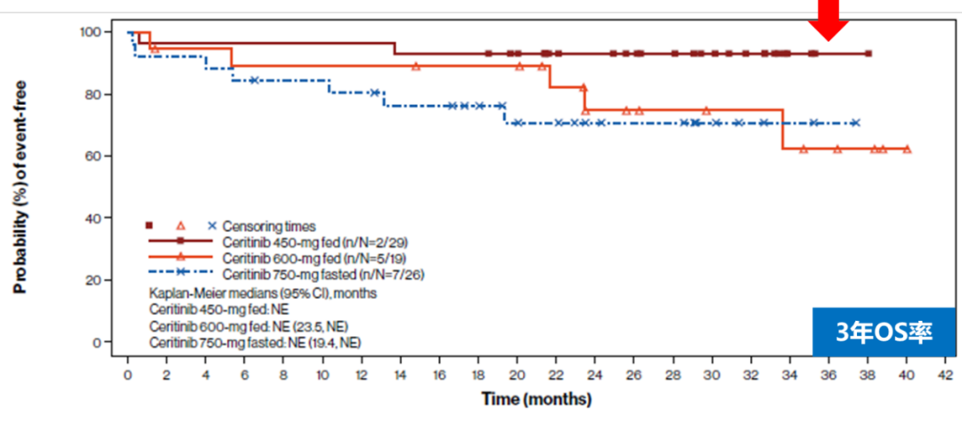 塞瑞替尼450mg随餐组3年生存率创新高,3年OS率为93.1%,超过9成的患者用药3年后仍可继续与疾病抗争。