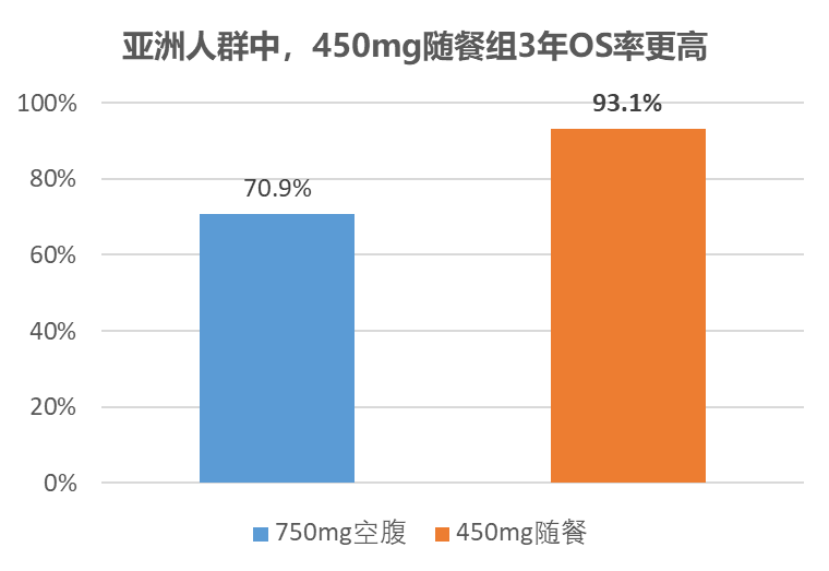 • 450mg随餐组3年OS率高达93.1%