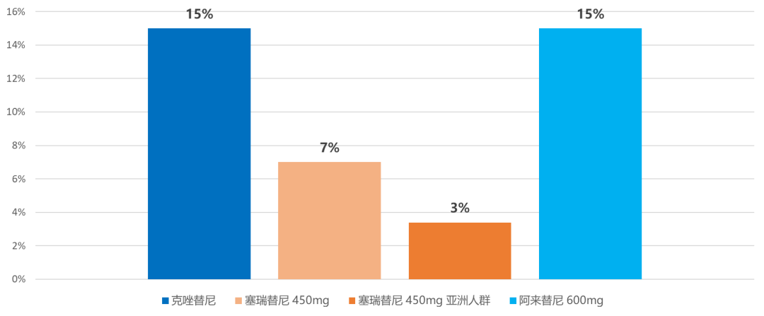 图6. 不同ALK抑制剂AE导致的停药率