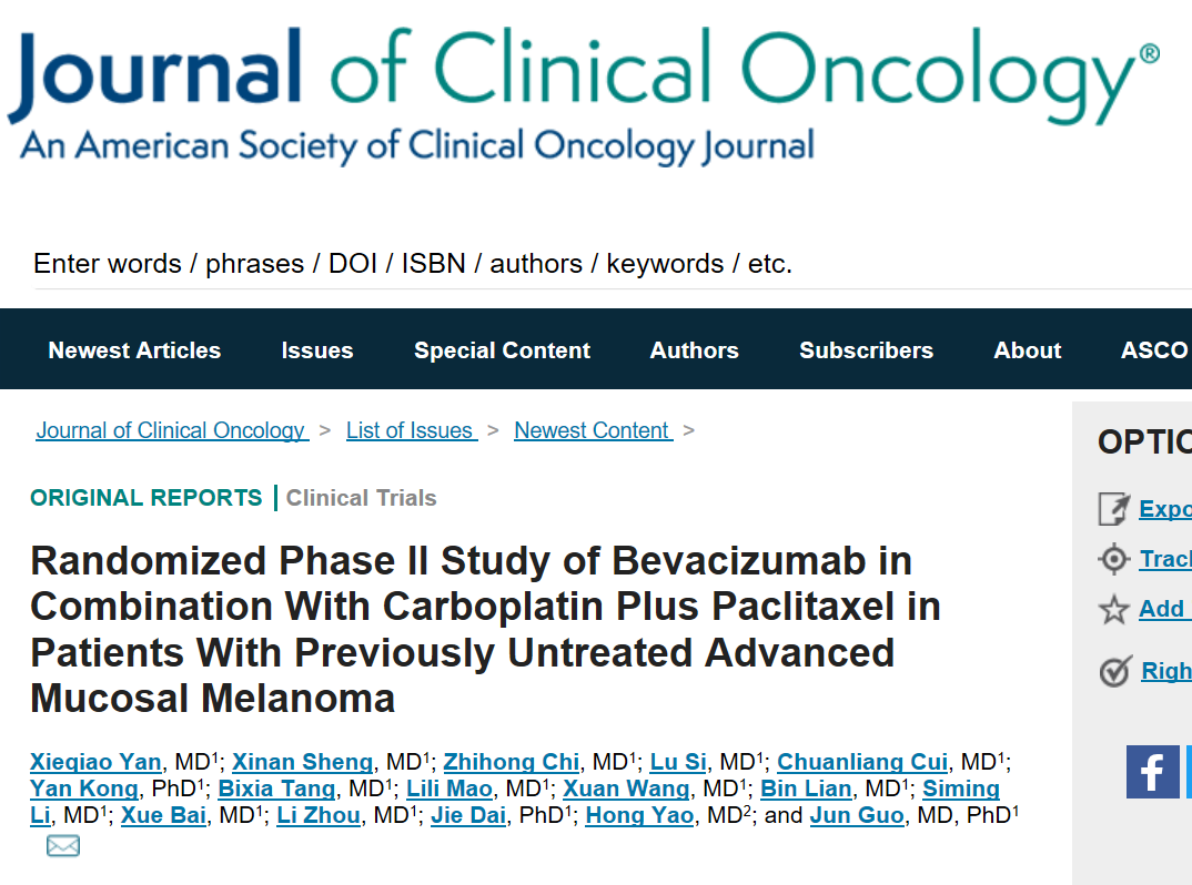 郭军教授团队研究成果再登JCO,黑色素瘤“亚洲病”又添中国方