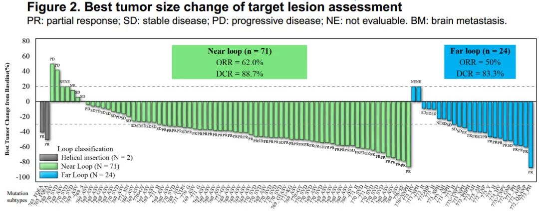 共有30种EGFR外显子20插入突变亚型被纳入研究,无论突变的亚型和位置,都观察到该药物的抗肿瘤活性。