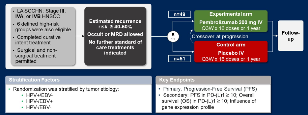 虽然近几年免疫治疗有了较大的发展,但在头颈鳞癌的几个大型临床研究中,在同期放化疗的基础上加入免疫治疗并没有取得很好的效果。不过,在今年ASCO年会上报道的2期PATHWay研究(摘要号:6008)中,帕博利珠单抗辅助免疫治疗在高危局部晚期头颈部鳞癌患者取得了比较好的PFS获益。对于免疫治疗在头颈鳞癌中的应用,其实在新辅助治疗中,国内已经做了很多小样本的临床研究,并取得了比较好的pCR率。当然,这是否能够转化为远期生存的改善,还有待于进一步的长期随访或更大规模的临床研究来验证,我认为这是非常重要的。